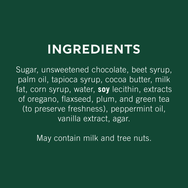 - Luscious, refreshing mint filling surrounded by slow-melting dark chocolate