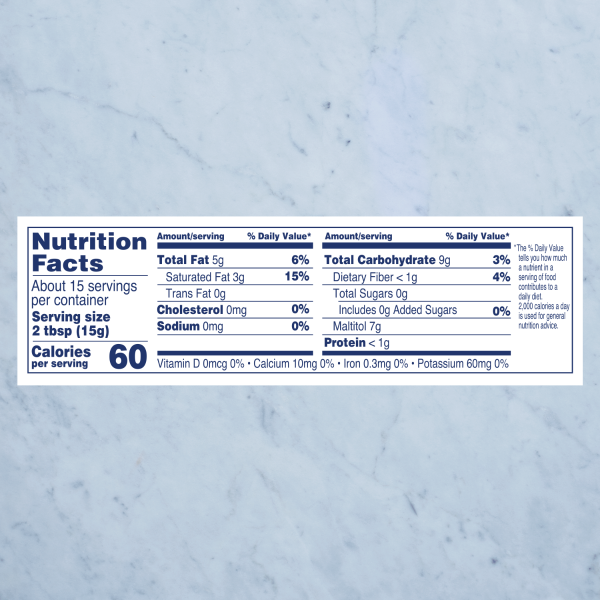 Made with cocoa butter, vanilla extract, unsweetened chocolate and no added sugar