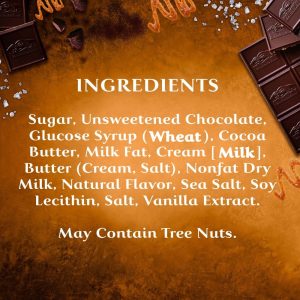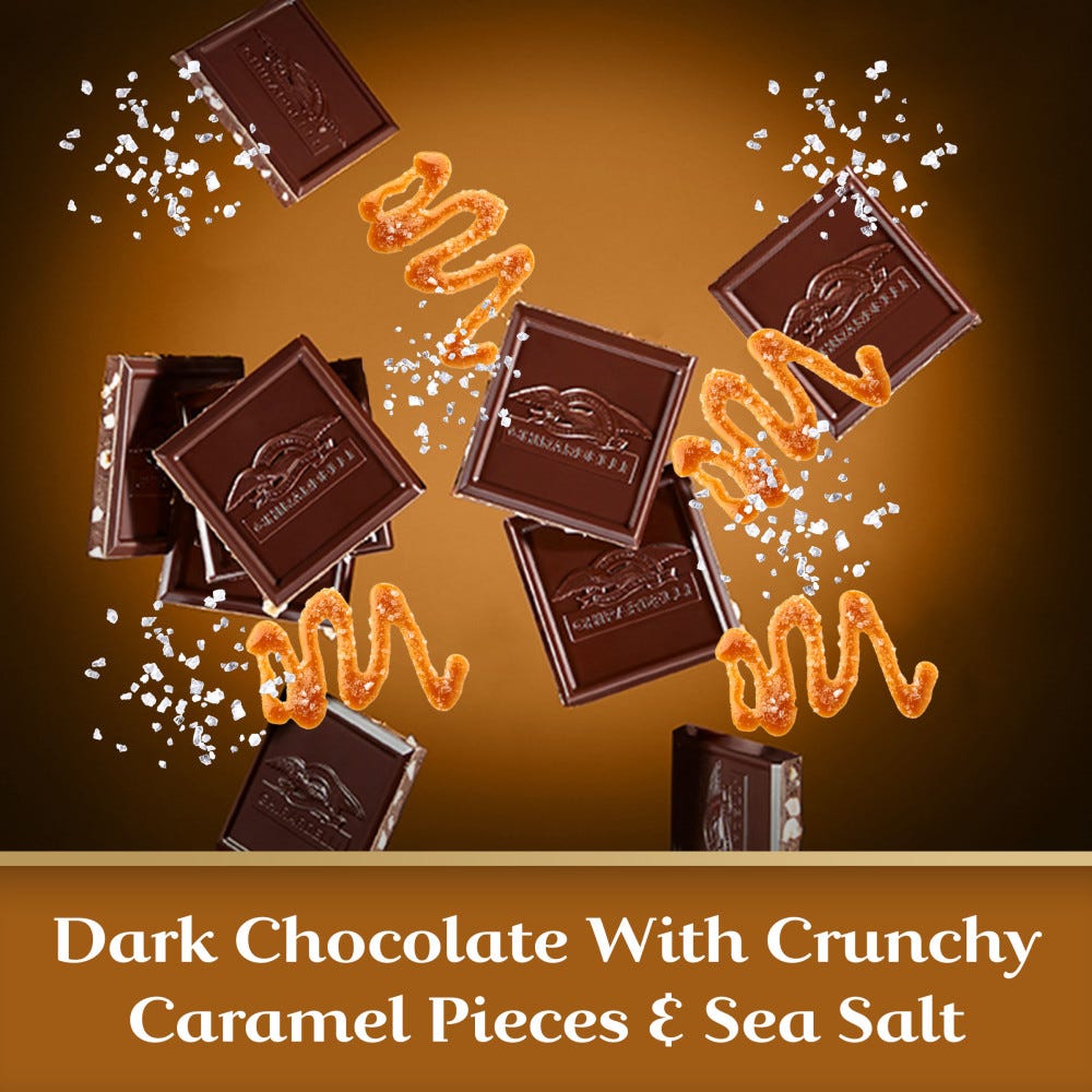 - Luscious and intense dark chocolate base with crunchy caramel pieces and a dash of sea salt