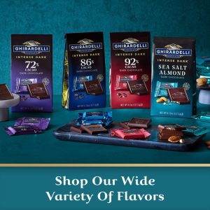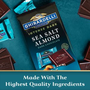 For an intensely delicious post-dinner treat or the perfect gift for your chocolate-loving friends, look no further than GHIRARDELLI Intense Dark Sea Salt Almond Chocolate Squares. Each individually wrapped square contains a rich blend of cocoa beans, roasted almonds and a touch of sea salt, creating a heavenly combination of salty and sweet. So grab a bag today and treat yourself to the ultimate in chocolate indulgence.
