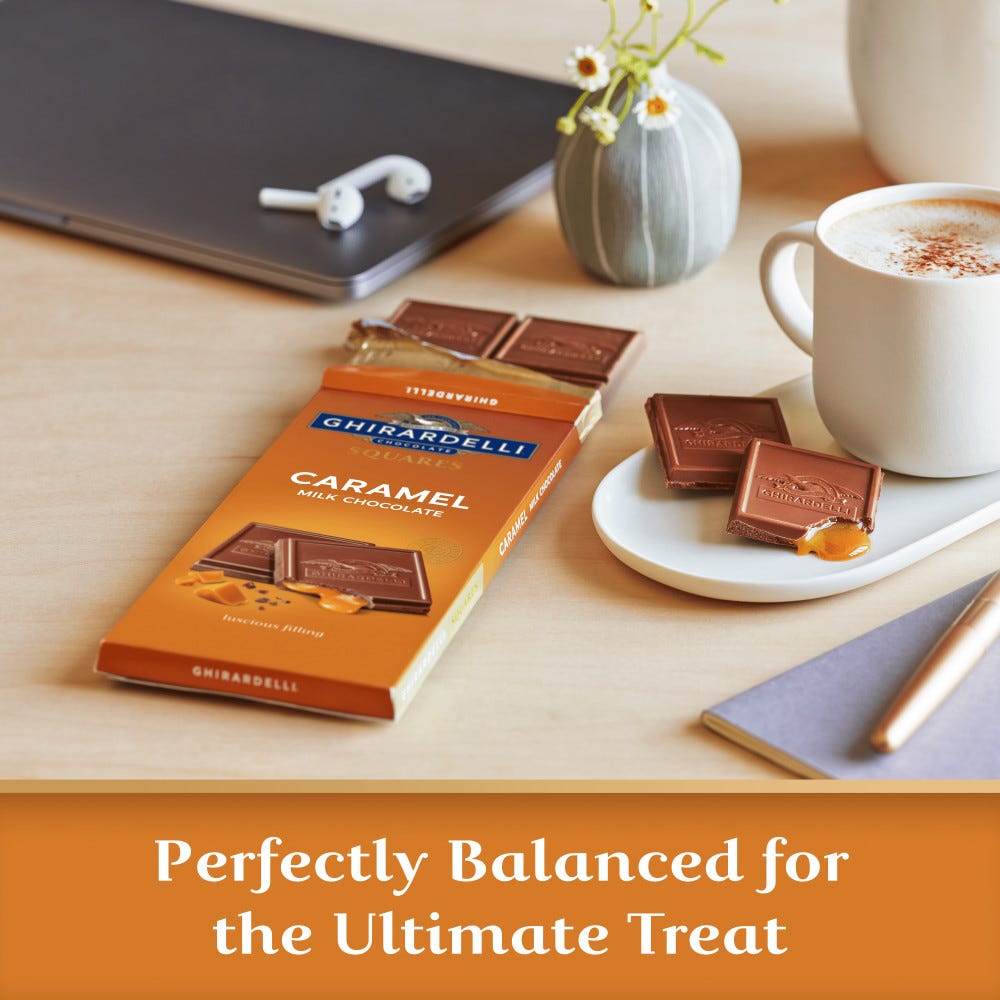 Enjoy the ultimate indulgence of GHIRARDELLI Milk Chocolate Bars with Caramel Filling. These decadent milk chocolate bars are filled with luscious caramel for a sweet treat anytime. Ten (10) 4.8 oz bars make it easy to keep your pantry stocked and they’re also perfect for sharing with friends, family, or coworkers. With a delicate balance of rich milk chocolate and buttery caramel, these candy bars are the perfect treat for yourself or as a gift.