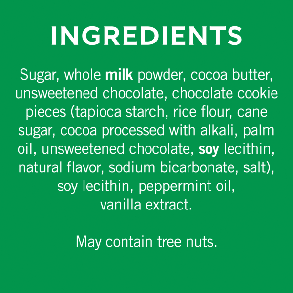 - Rich, indulgent milk chocolate with mint and crunchy chocolate cookie bits