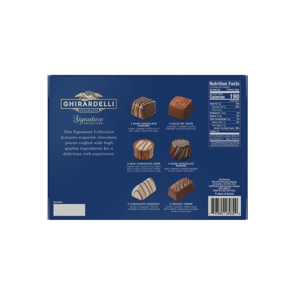 Celebrate with this exquisitely crafted Ghirardelli Signature Collection chocolate assortment. This beautiful blue gift box adds a touch of elegance to any gifting or sharing occasion. Delight family and friends with decadently rich and incredibly smooth chocolate. Taste the difference and enjoy a little indulgence. This festive gift box of candy is the perfect way to celebrate any time. Committed to ultimate quality from bean to bar, GHIRARDELLI chocolate is crafted with care using high quality ingredients for a smooth, delectable treat. GHIRARDELLI Makes Life a Bite Better!