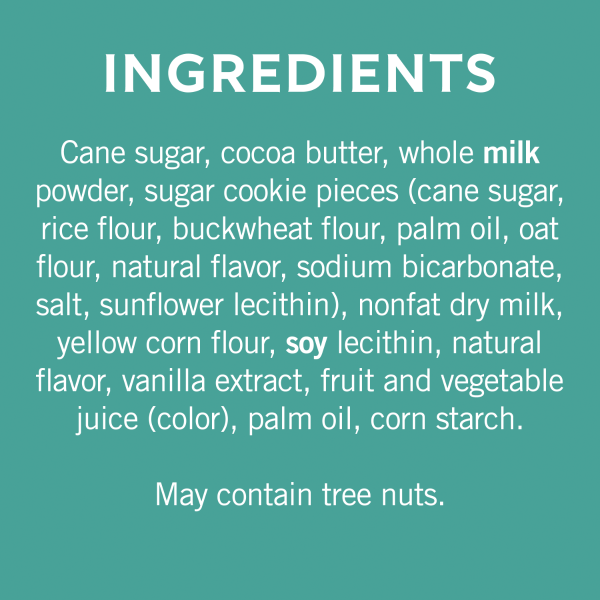 GHIRARDELLI White Chocolate Sugar Cookie Squares feature rich, white chocolate with cookie bits and festive sprinkles. Each individually wrapped chocolate square is made with rich, high-quality ingredients. The perfect gift for a variety of occasions, these delicious chocolates are a great way to put smiles on the faces of your colleagues, family and friends. Also ideal for entertaining, these white chocolate squares are delectable post-dinner treats, and they add a festive touch to candy dishes. Each piece of these kosher white chocolate candy squares is crafted with care using high-quality ingredients for a melt-in-your-mouth indulgence.
